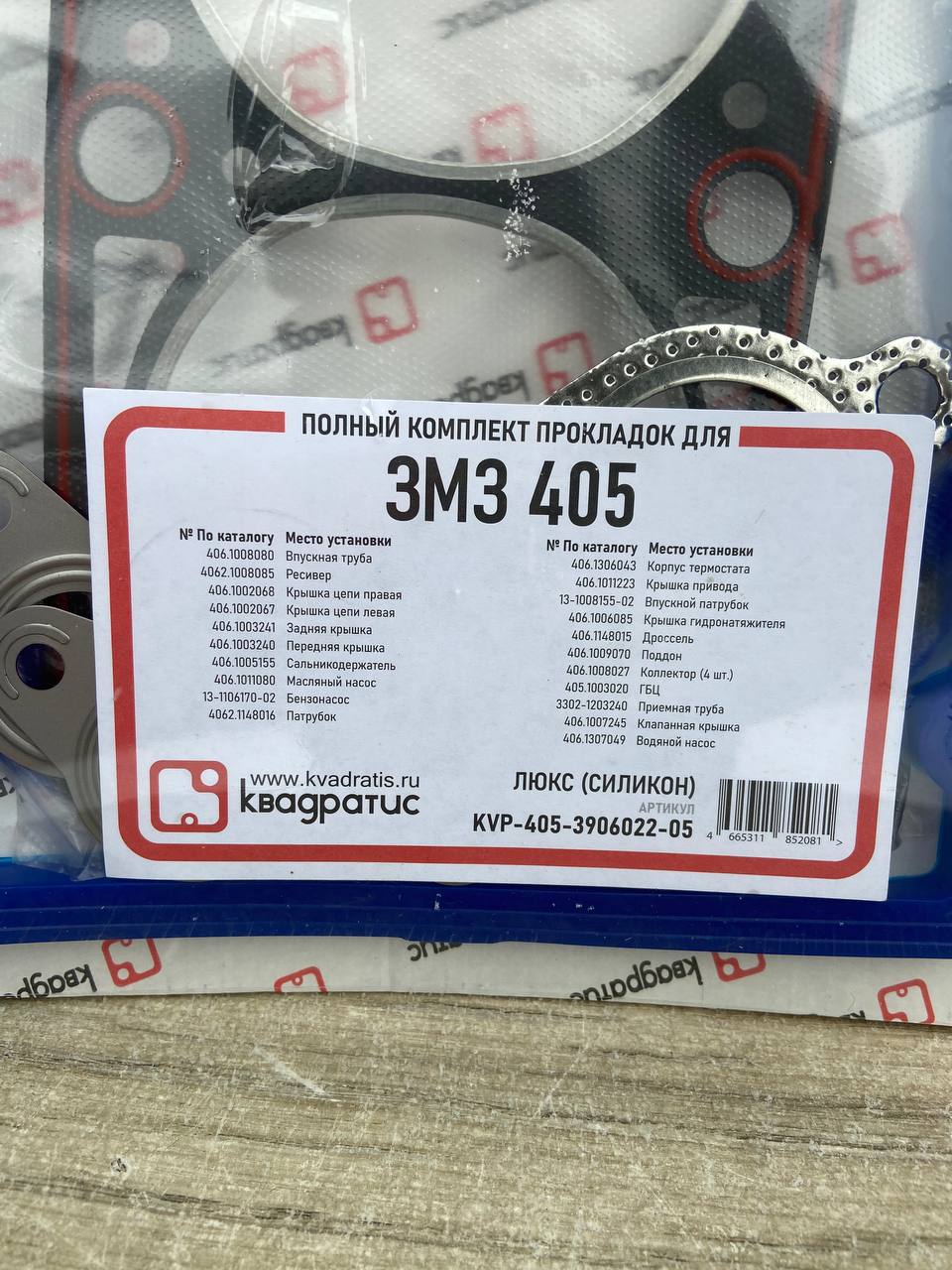 Полный комплект прокладок двс для ЗМЗ 405. Силикон. Производства “Квадратис”. Цена за комплект